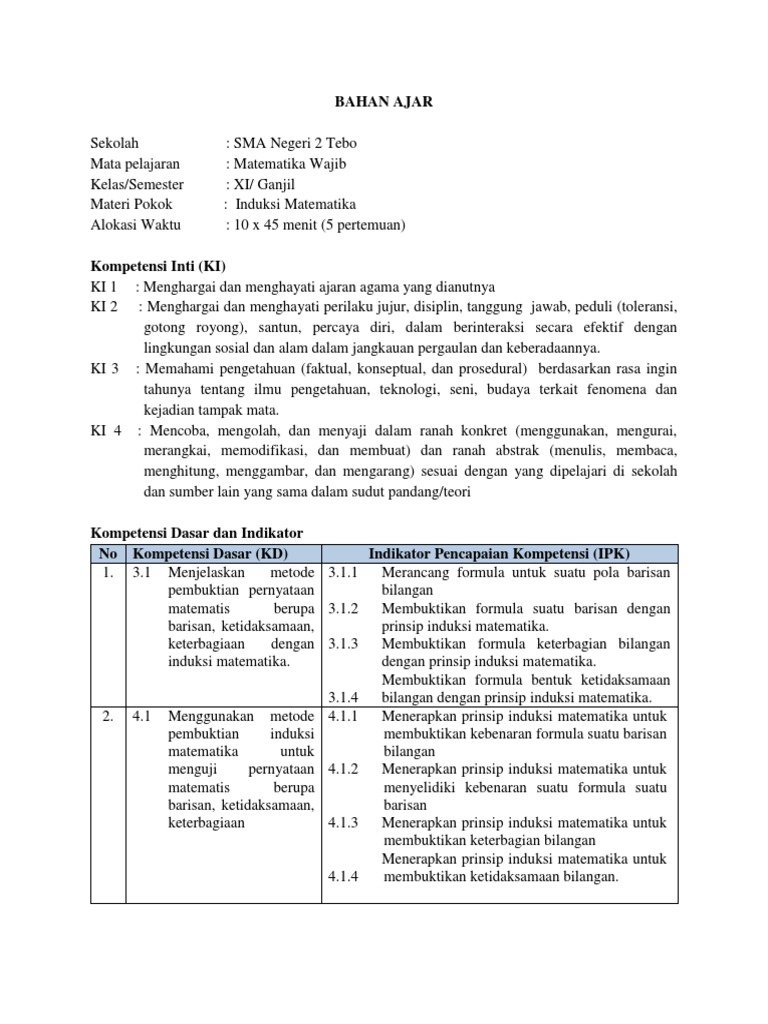 A. Kompetensi Dasar dan Pengalaman Belajar - Bab 1 Induksi …
