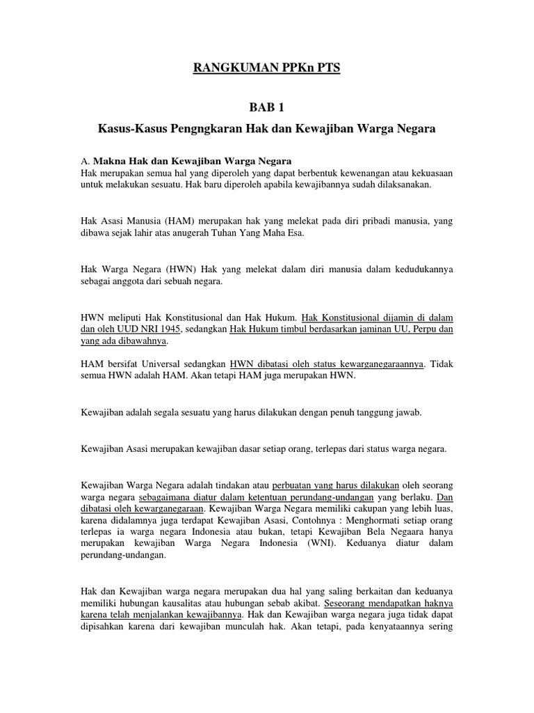 Rangkuman Ppkn Pts: Makna Hak dan Kewajiban Warga Negara