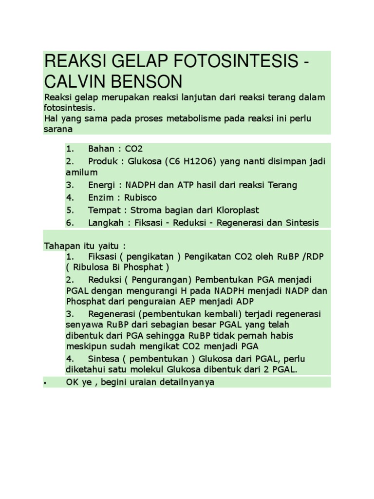 Fotosintesis-Reaksi Gelap Terang - StuDocu