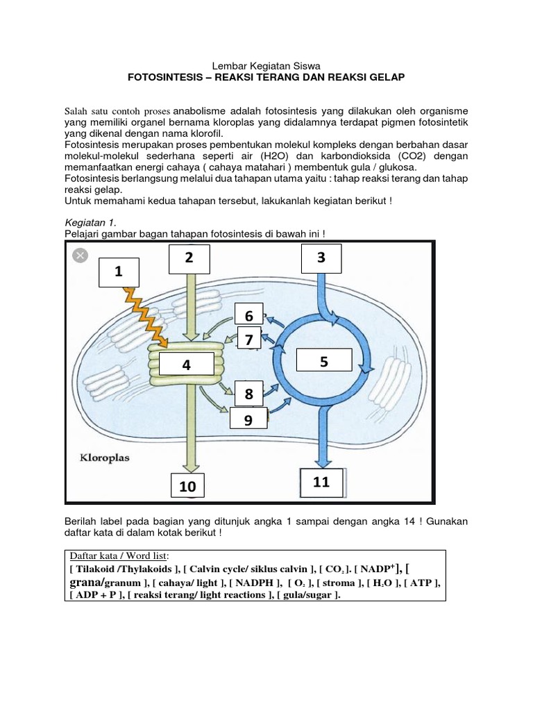 Lembar Kegiatan Siswa Reaksi Terang Dan Gelap