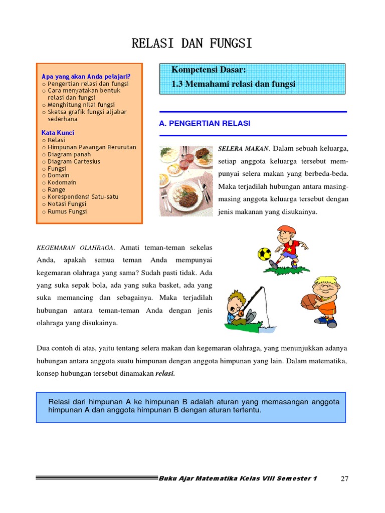 Materi Relasi Dan Fungsi dipelajari di kelas 8 semester 1. Dengan …