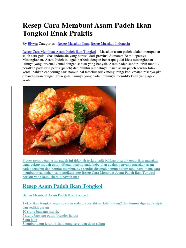 Resep Resep Asam Padeh Ikan Tongkol ( Asam Padeh Recipe ) | oleh …