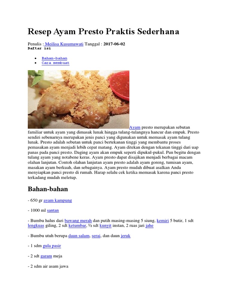 Resep Ayam Presto Praktis Sederhana : Bahan-bahan - Cara membuat (Kerjanya)