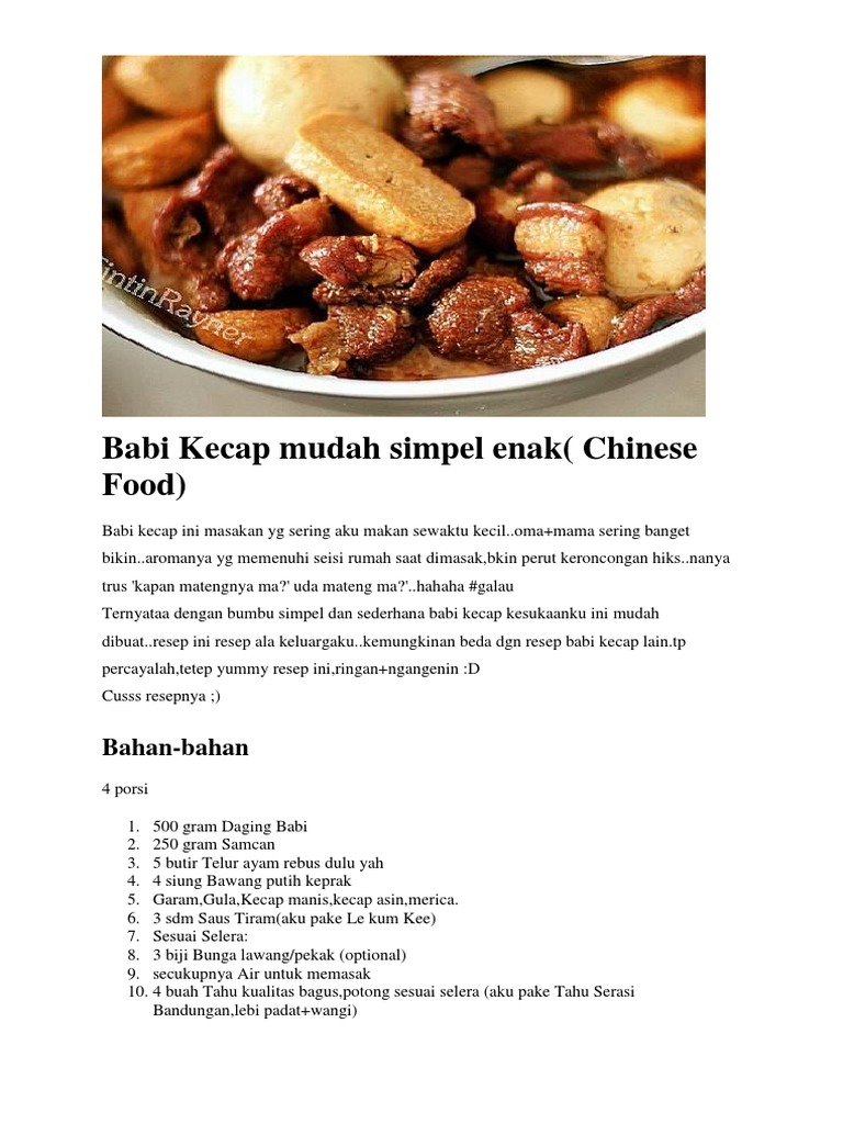 Resep Babi Kecap Praktis Sederhana : Bahan-bahan - Cara membuat …