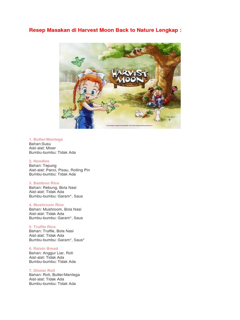 Resep Masakan Di Harvest Moon Back To Nature Versi Indonesia
