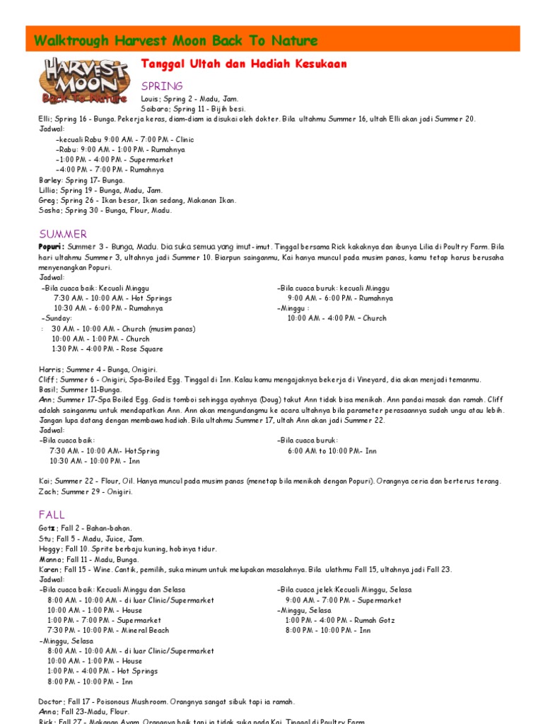 Panduan Harvest Moon Back To Nature Pdf - Guru Galeri