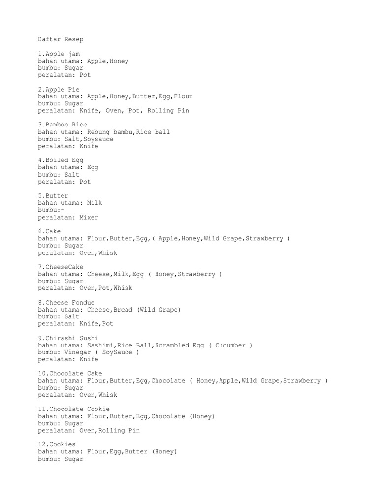 Resep Makanan Hmbtn - Resep Resep Harvest Moon Btn