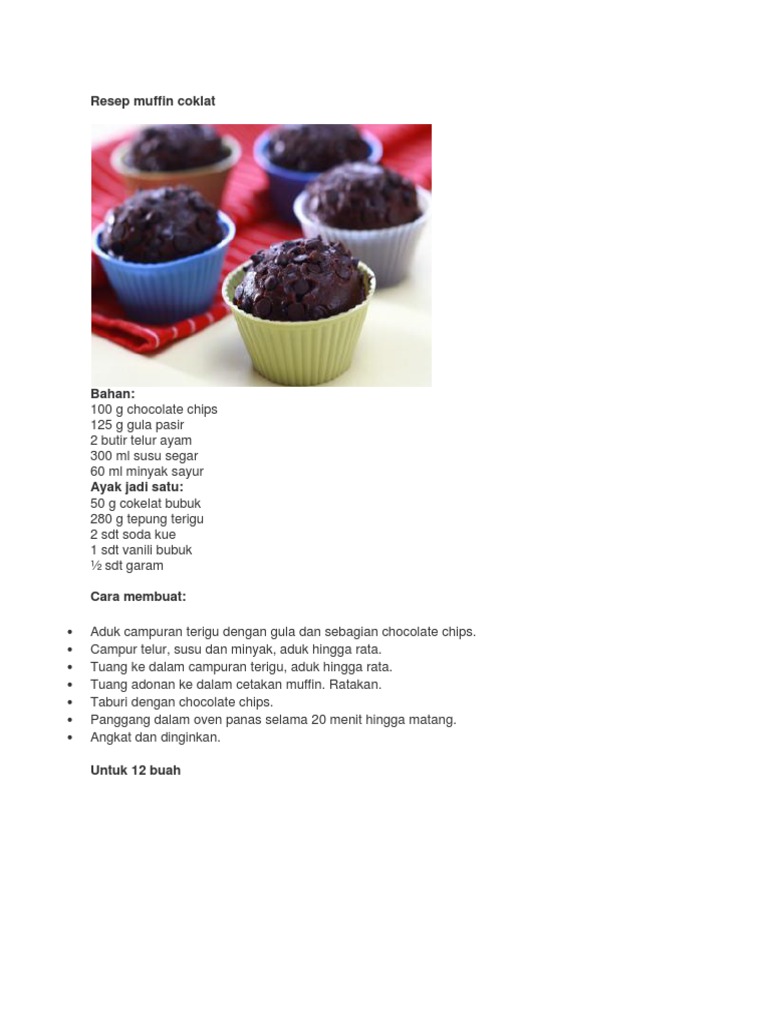 Resep Muffin Coklat Praktis Sederhana : Bahan-bahan - Cara membuat …