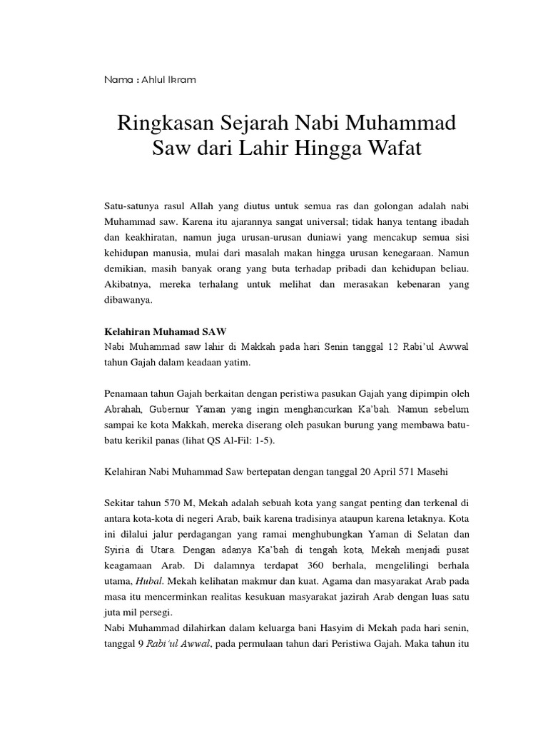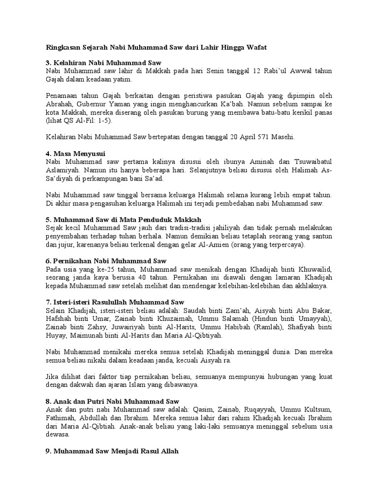DOC) Ringkasan Sejarah Nabi Muhammad Saw dari Lahir Hingga | afidha nuraini - Academia.edu