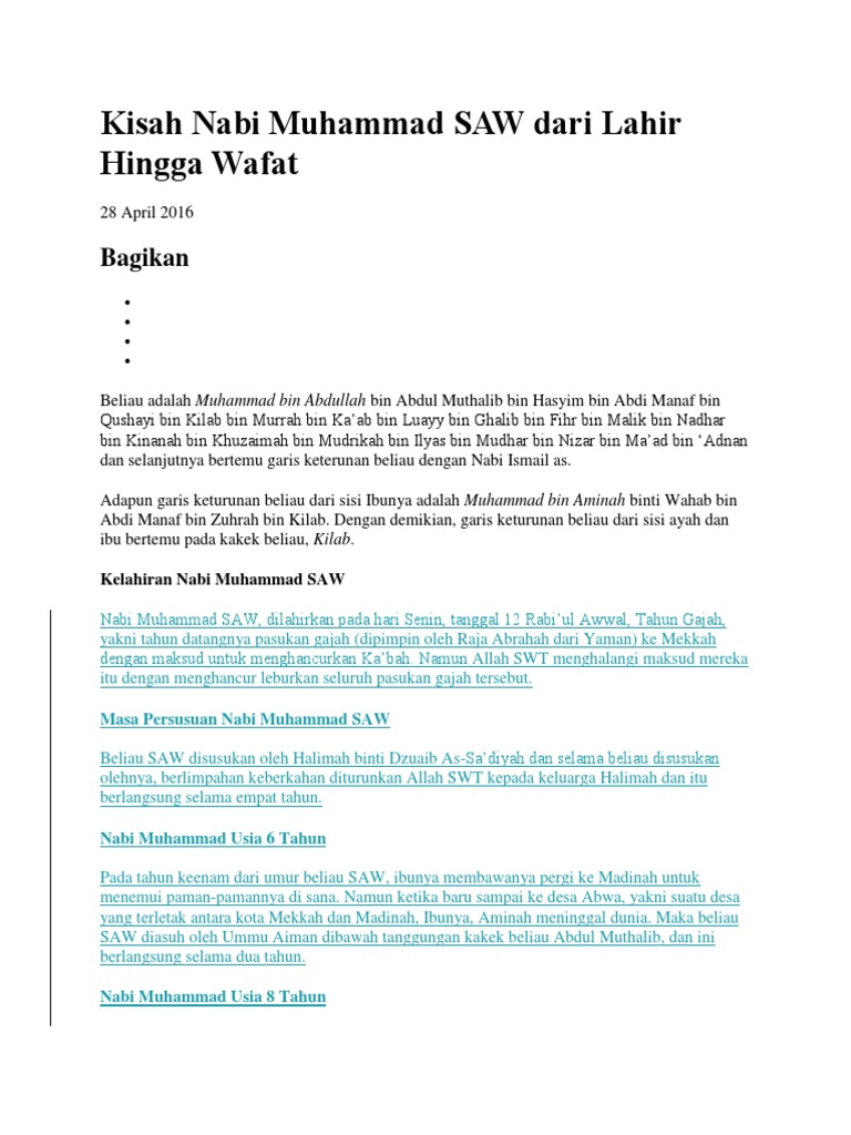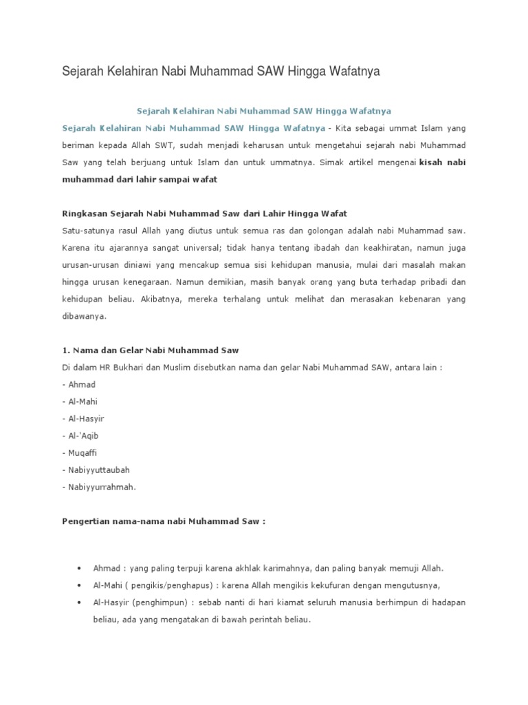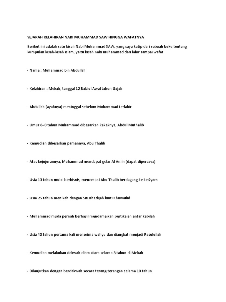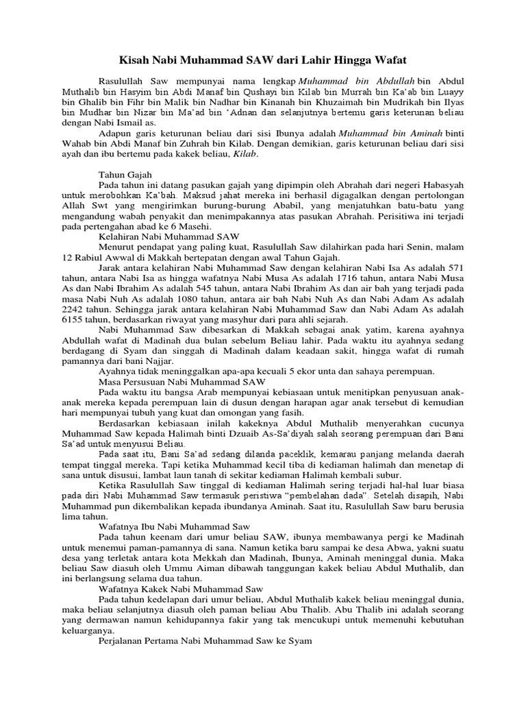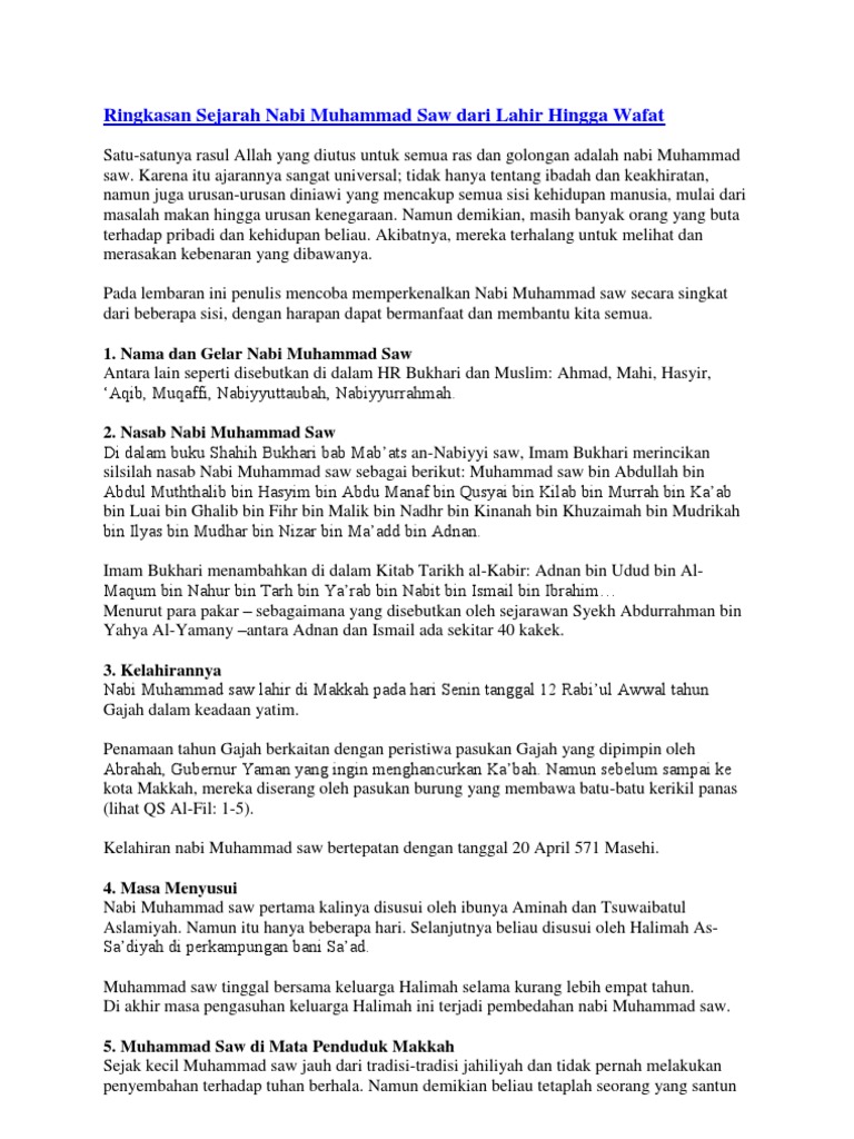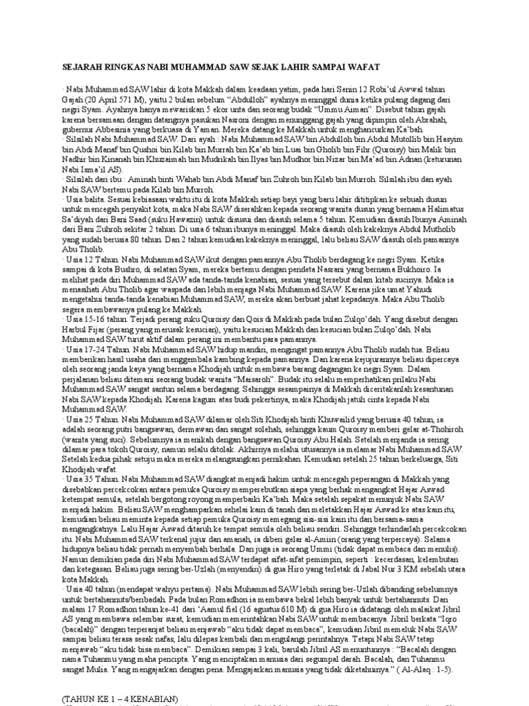 Sejarah Nabi Muhammad Saw Dari Lahir Sampai Wafat Pdf - Temukan Jawab