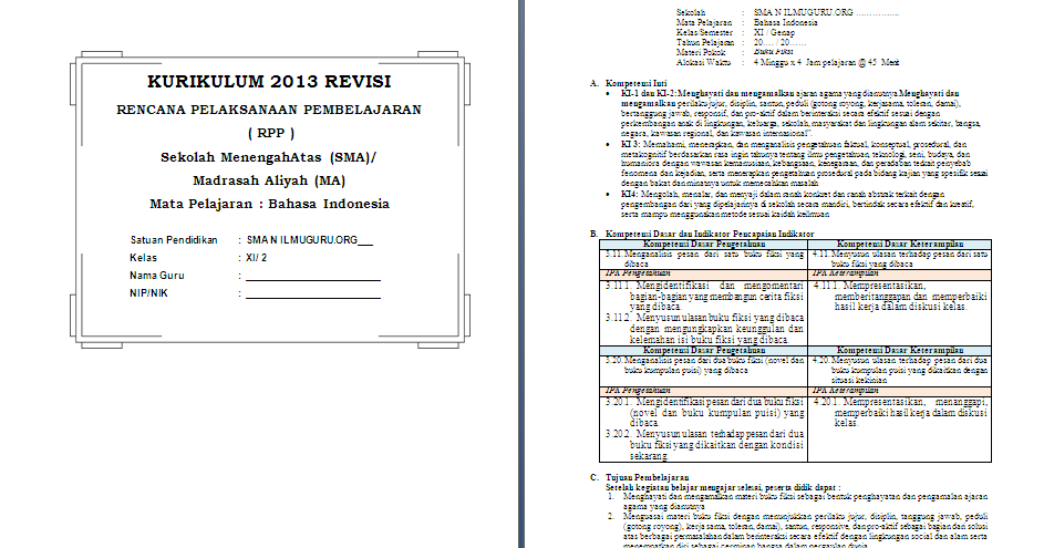 Rpp Bahasa Indonesia Kelas Xi Kurikulum 2013