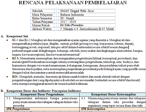 Rpp Bahasa Indonesia Sma Kelas Xi Semester 1 - squarelinoa’s blog