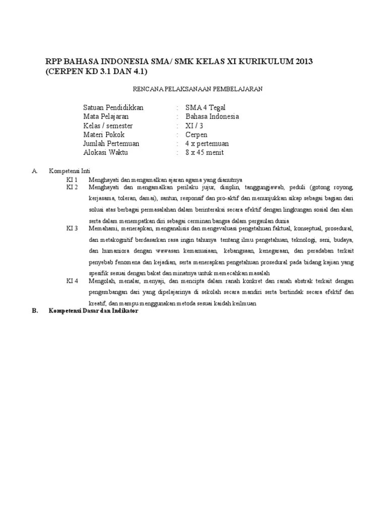 RPP BAHASA INDONESIA KELAS XI KURIKULUM 2013 | Kurikulum, Bahasa …