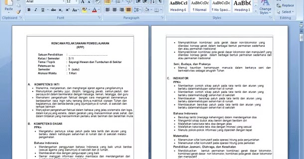 Contoh RPP 1 Lembar kelas 1 2 3 4 5 6 Lebih Hemat Kertas Untuk …