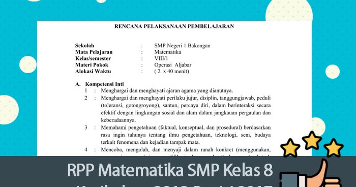 Sudahkan Anda Memiliki Rpp Matematika Smp Kelas 8 Kurikulum 2013 Revisi 2017 Format Doc - Cute766