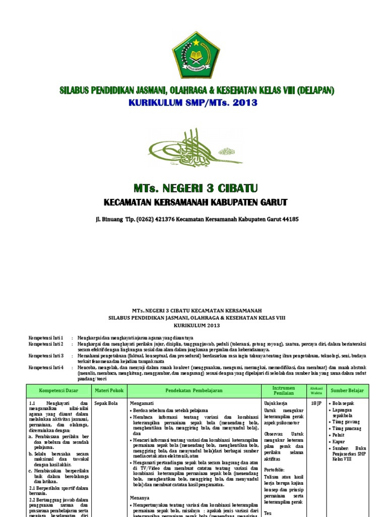 Silabus Penjas SMP/MTs Kelas 8 Semester Ganjil Kurikulum 2013 …