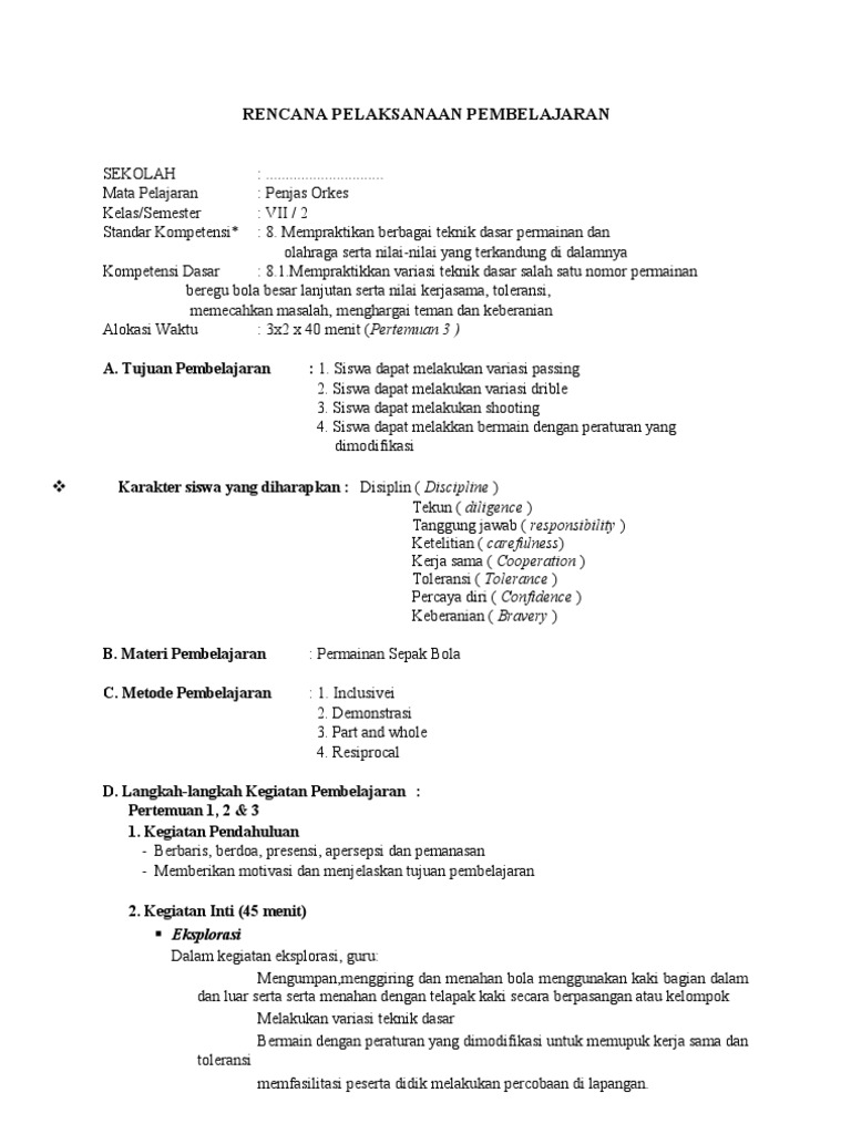 Lengkap RPP 1 Lembar PJOK K13 Kelas 7 Tingkat SMP Semester 2 Tahun …