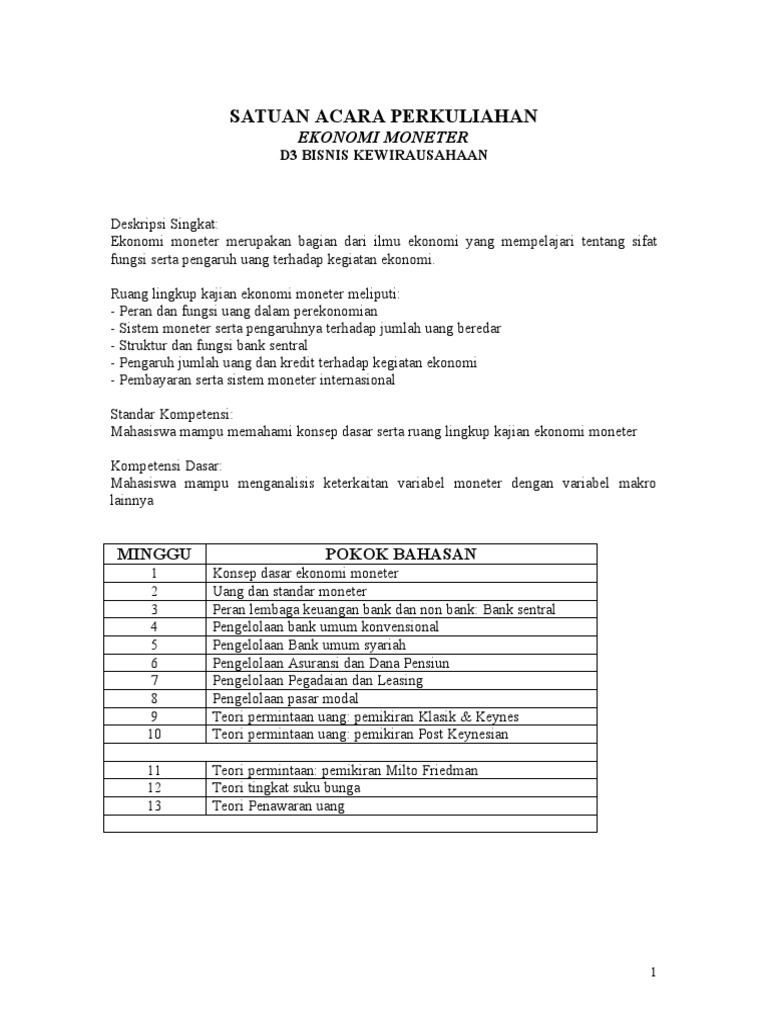 DOC) SILABUS EKONOMI MONETER | dayu bin - Academia.edu