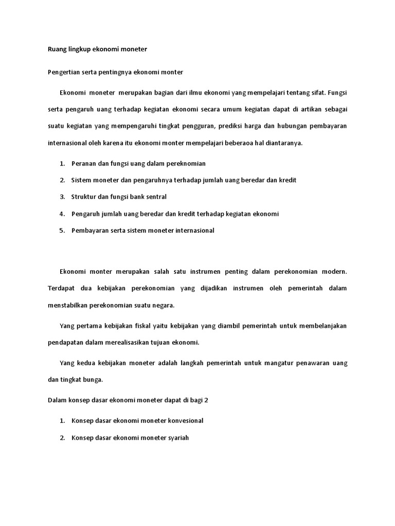 Ekonomi Moneter II (Tugas 1)individu.docx - MAKALAH EKONOMI MONETER II RUANG LINGKUP EKONOMI MONETER Disusun Oleh Fierha Noveryanda(16602010101 PROGRAM | Course Hero