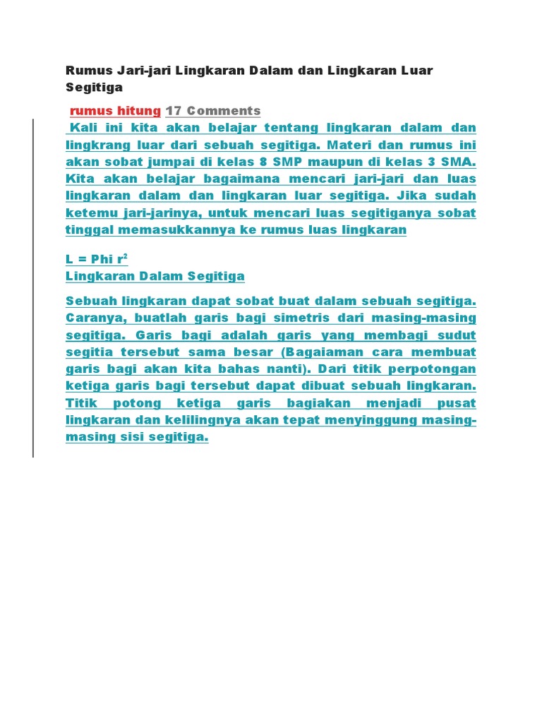 Rumus Hitung Lingkaran Dalam Dan Luar Segi Tiga - Ragam Teknik