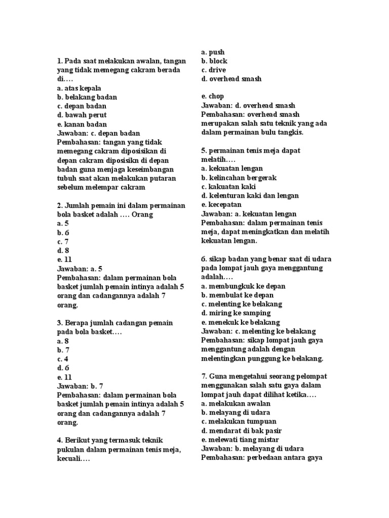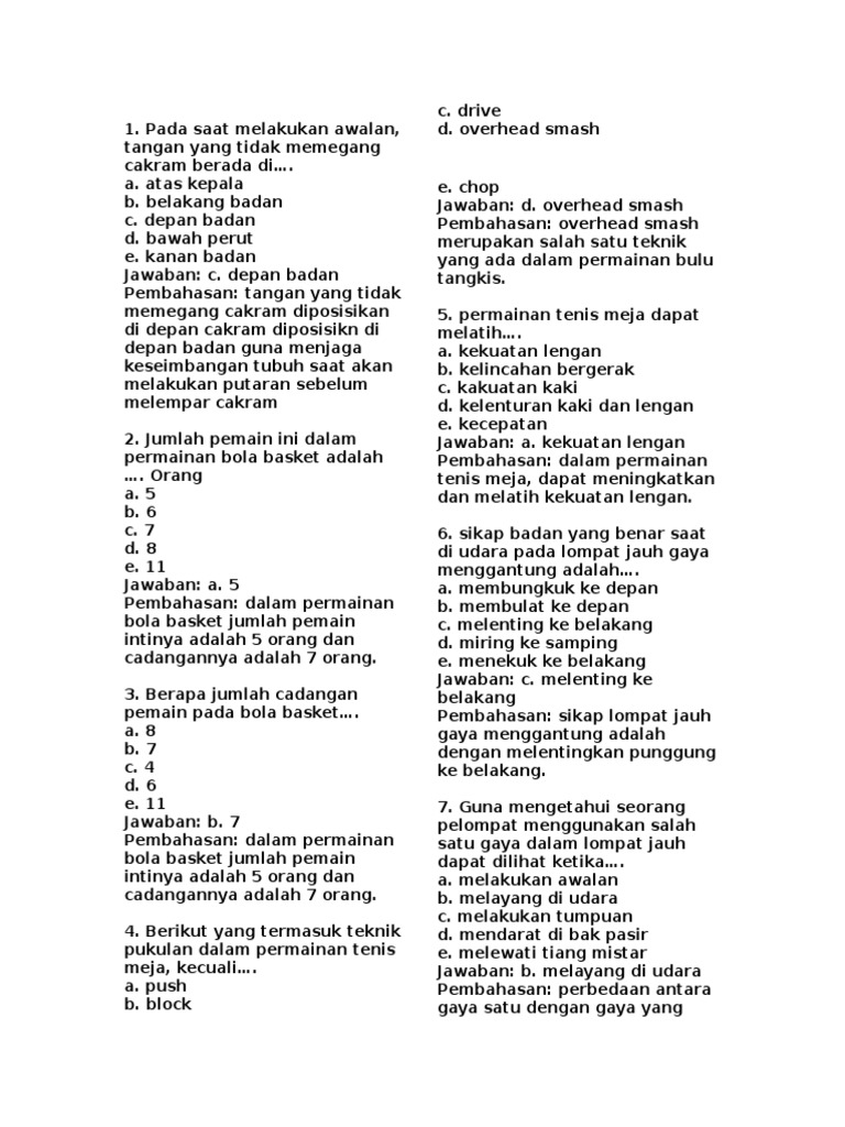 Soal penjaskes kelas xii