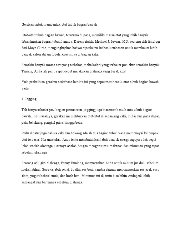 Gerakan untuk membentuk otot tubuh bagian bawah