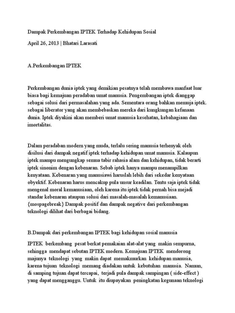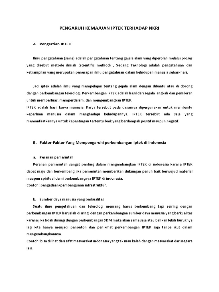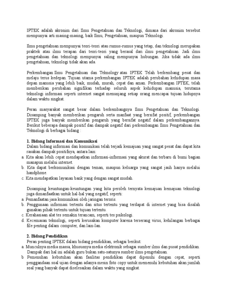 DOC) PENGARUH POSITIF DAN NEGATIF DARI PERKEMBANGAN IPTEK BAGI …