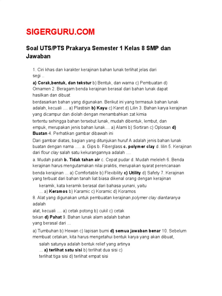 Soal + Jawaban PTS Prakarya Kelas 8 Sem. Ganjil Kurikulum 2013 …