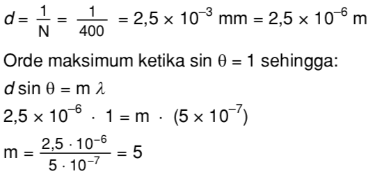 1. Seberkas cahaya jatuh tegak lurus pada kisi yang terdiri dari 5 …