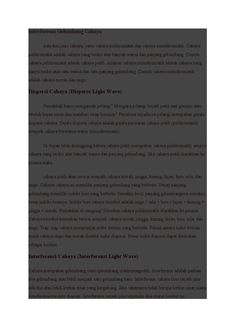 Gelombang Cahaya - Sifat, Dispersi, Difraksi, Interferensi, Contoh …