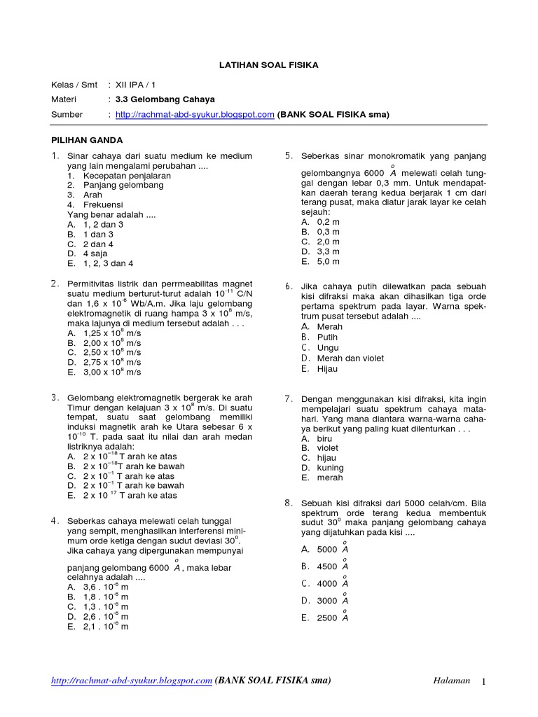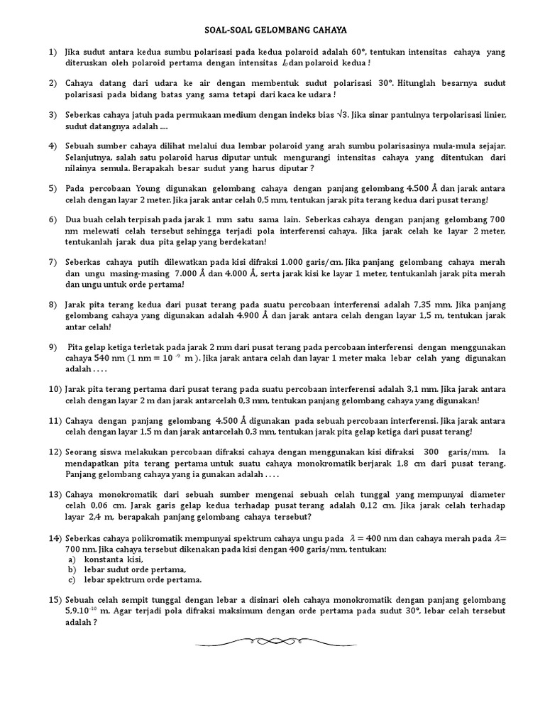 Kumpulan Soal Dan Pembahasan Fisika – Gelombang Cahaya …