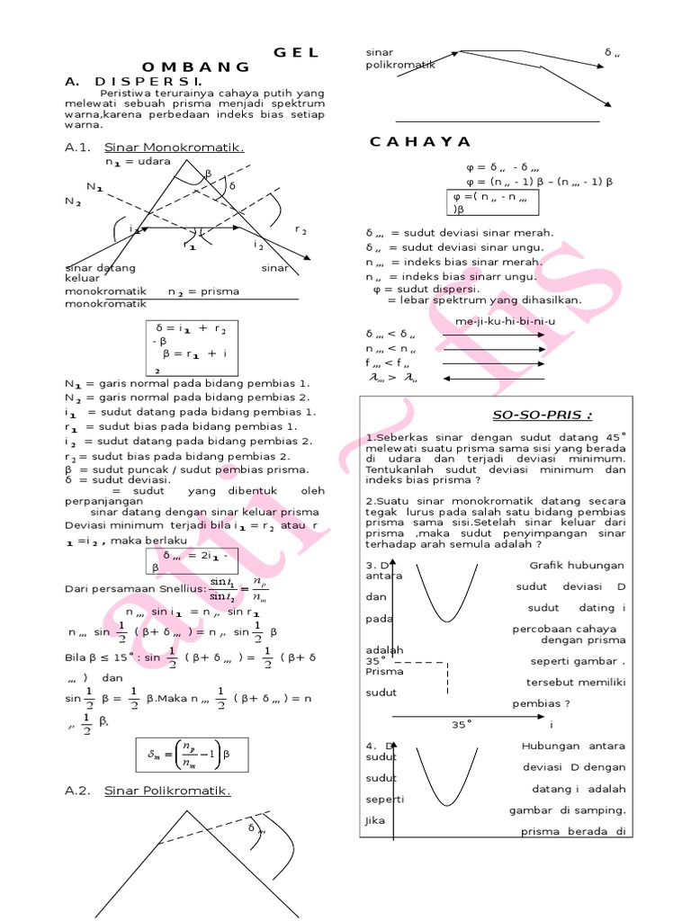 Rumus Sudut Deviasi Minimum, Warna dan Dispersi Prisma, Contoh …