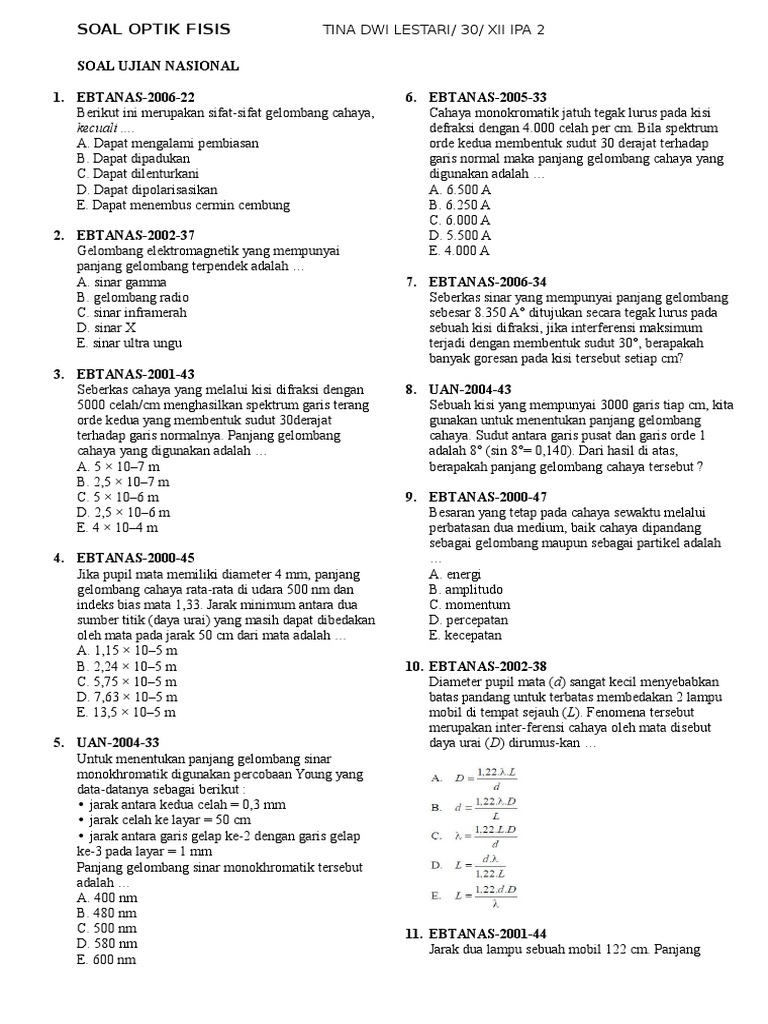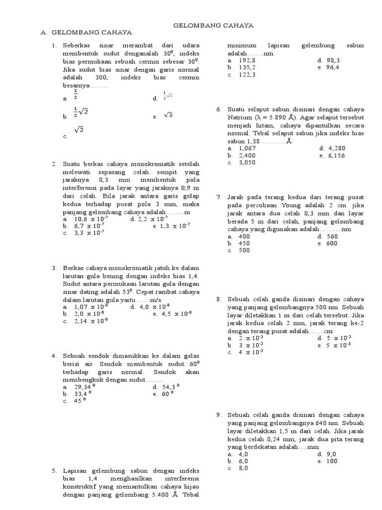 DOC) Cahaya-soal (1) | yovan novianto - Academia.edu