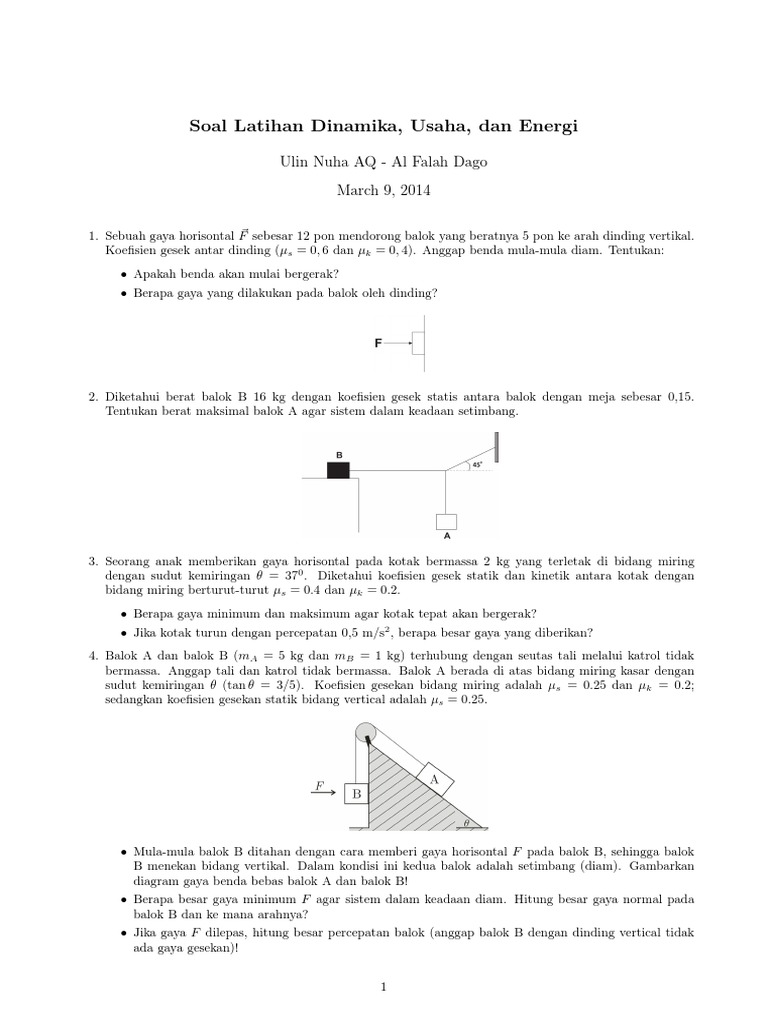 Kumpulan Soal dan Jawaban Usaha di Bidang Miring