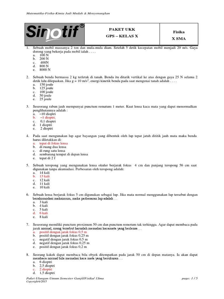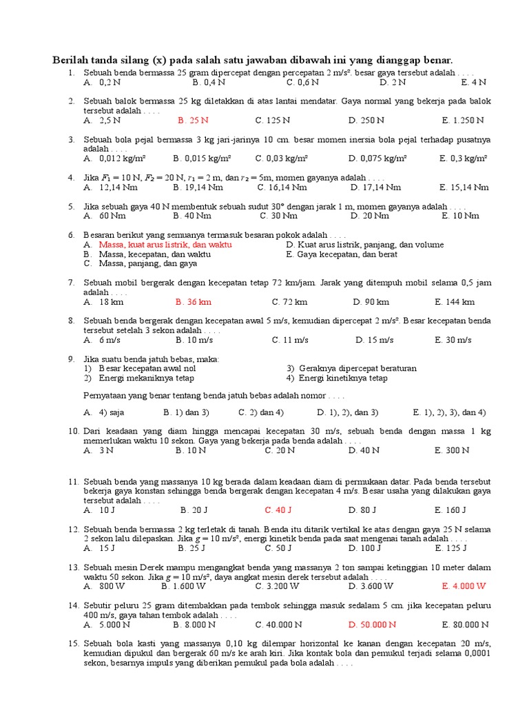 SOAL PAS FISIKA Kelas 10 SMA Semester 1 Lengkap Kunci Jawaban Soal …