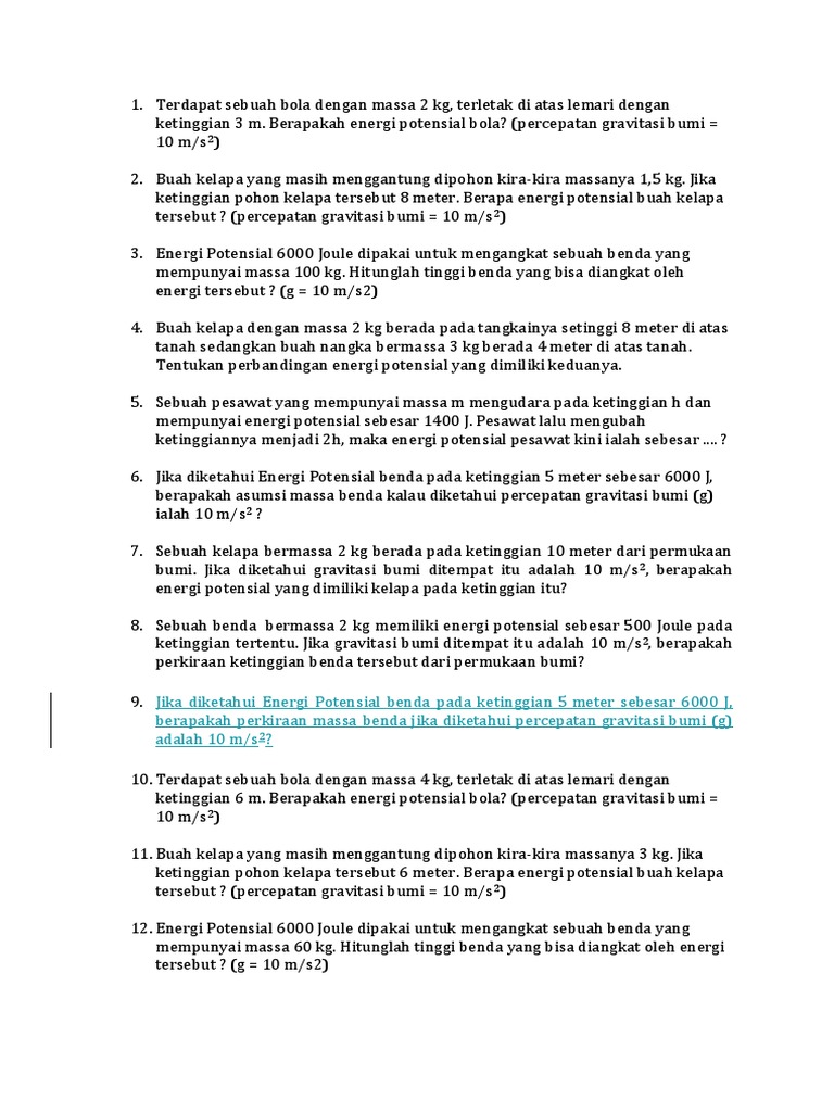 soal energi kinetik dan energi potensial