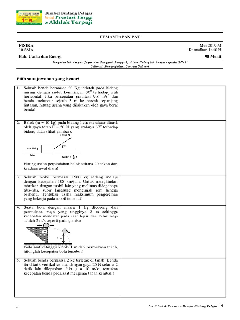 Bank Soal PAT Fisika 10 SMA (Usaha dan Energi)_Sem 2 (layout …