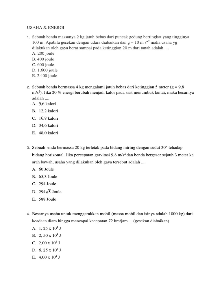 Soal Usaha Dan Energi