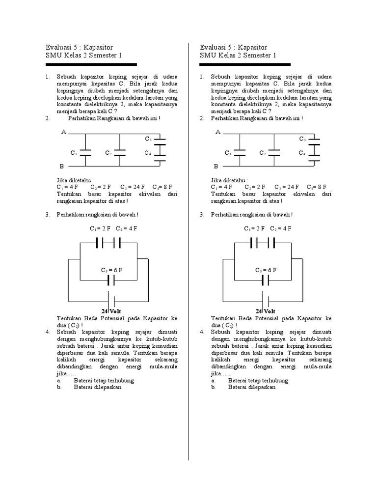 Evaluasi 5 : Kapasitor SMU Kelas 2 Semester 1