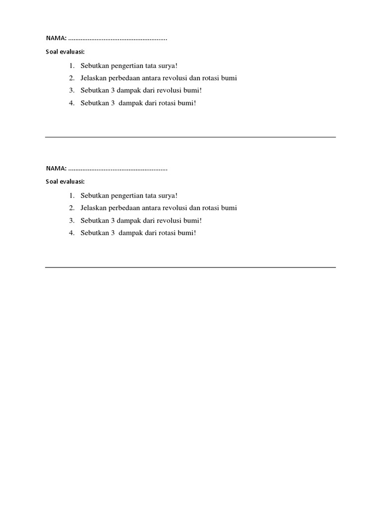 NAMA: ……………………………………………….. Soal evaluasi