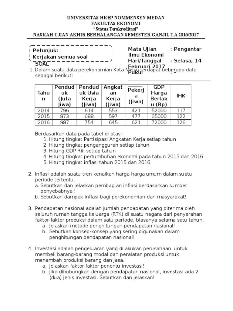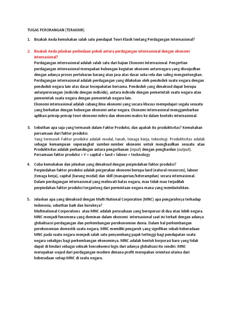 Soal Ekonomi Internasional Berdasarkan Perkiraan Saat Perkuliahabn