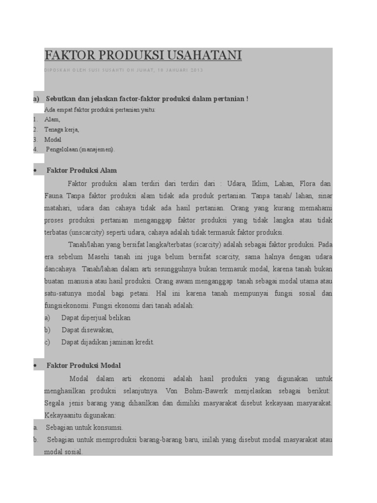 DOC) FAKTOR PRODUKSI USAHATANI | Didikademr didik - Academia.edu