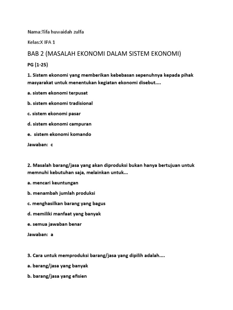 Bab 2 (Masalah Ekonomi Dalam Sistem Ekonomi): Nama:Tifa huwaidah …