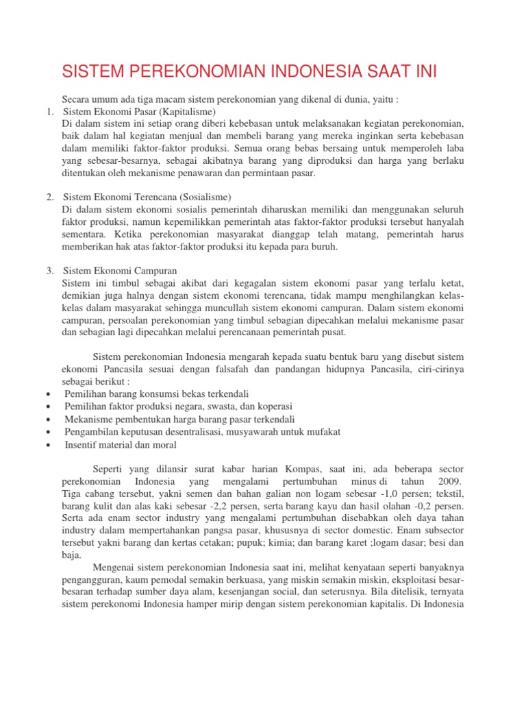 Sistem Ekonomi Indonesia dan Karakteristiknya