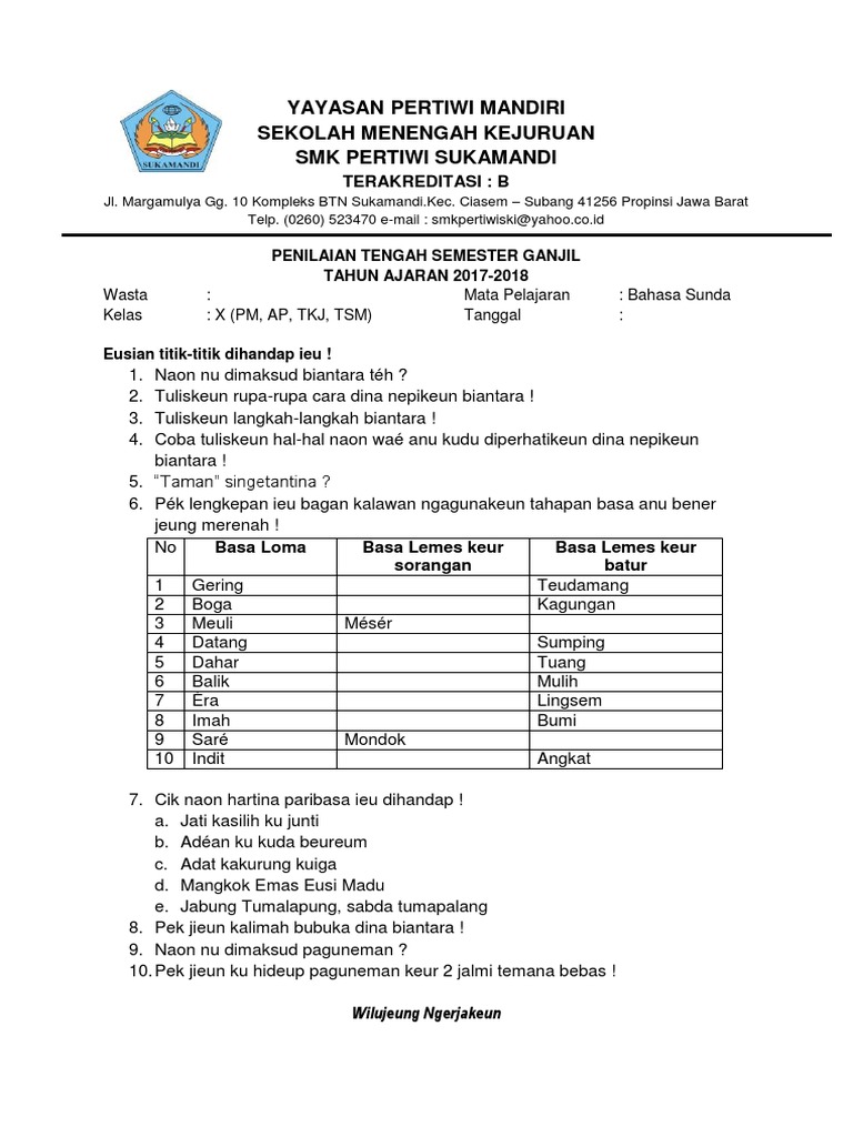 Soal Bahasa Sunda