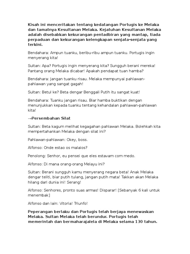 Kisah Ini Menceritakan Tentang Kedatangan Portugis Ke Melaka …