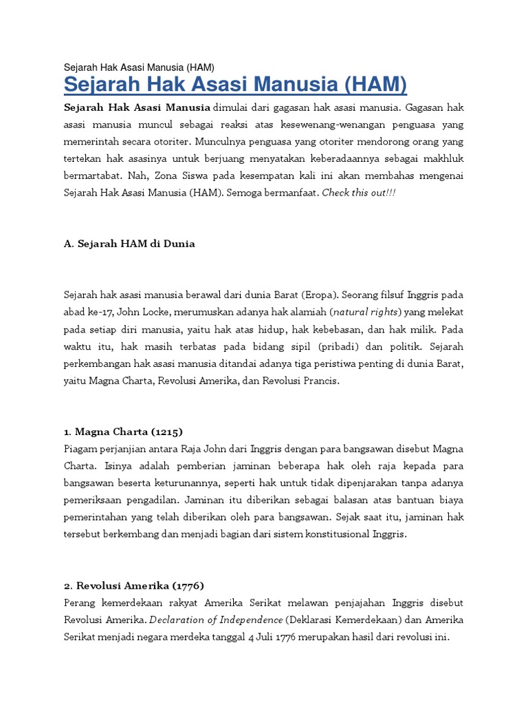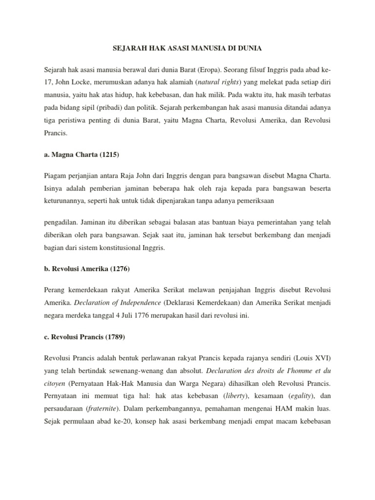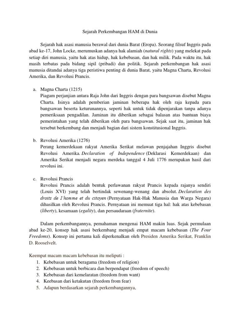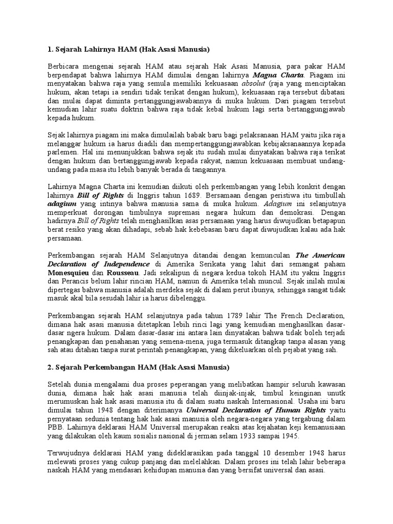 DOC) HAK ASASI MANUSIA SEJARAH SINGKATNYA TIMBULNYA HAM | Ahmad Rais - Academia.edu