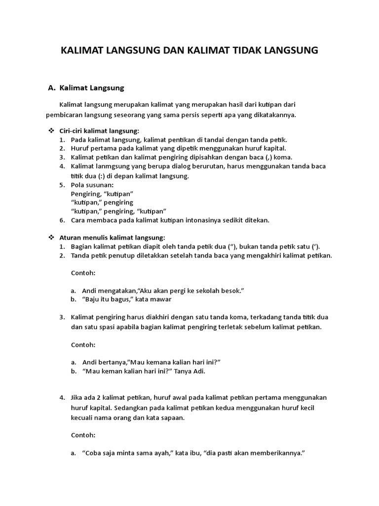 62 Contoh Kalimat Langsung dan Tidak Langsung : Perbedaannya