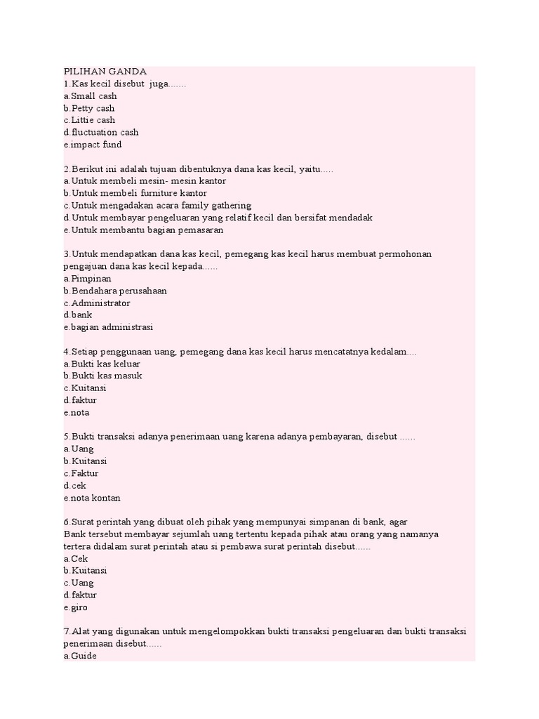 Soal Pilihan Ganda Dan Jawabannya Tentang Dana Kas Kecil …
