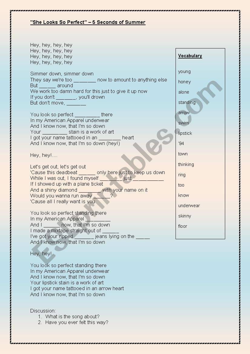 YS SIMMER DOWN SIMMER DOWN She Looks So Perfect Lyrics 5 Seconds …